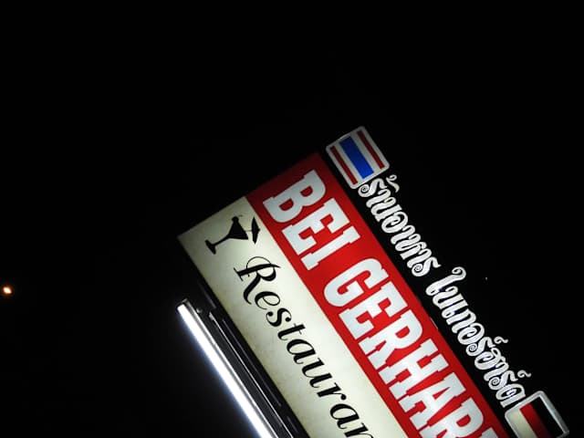 Meine Frau (Thai) und ich waren in den vergangenen Mo naten mehrfach "Bei Gerhard" (Naklua Road Soi 33, am Ende der Strasse, links) essen und waren stets zufrieden. Sowohl die deutschen-/schwäbischen-, als auch die thailändischen Gerichte (Reis inklusive) waren immer schmackhaft. Mein Favorit: Der Schweizer Wurstsalat mit Bauernbrot und Butter (mit 170 Baht absolut vernünftig ausgepreist). Auch die Erbsensuppe mit Wurst ist sehr zu empfehlen, wenn auch ,meiner Ansicht nach, mit 120 Baht zu hoch angesetzt. Der gemischte Grillteller war reichhaltig, das Fleisch nicht zu trocken, nur die Sosse beim Filitgeschnetzelten war mir persönlich etwas zu dünn. Die Portionen sind mittelgross, das Preisniveau ist ebenfalls im mittleren bereich angesiedelt. Die Atmosphäre in dem recht grossen, sauberen (u.a. sind die Toiletten 1a renoviert und sauber) Lokal ist angenehm, die Bedienung freundlich und recht aufmerksam. Abends kann es schon mal etwas trubelig werden, weil oft voll, tagsüber ist es hingegen sehr ruhig (wir waren einige Male zwischen 14 und 16 Uhr dort - kaum Tische besetzt). Wenn mir also mal wieder nach Schweizer Wurstsalat ist, werde ich den ganz bestimmt wieder "Bei Gerhard" essen! Einfach mal hingehen und testen - es lohnt sich.