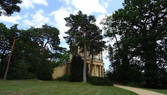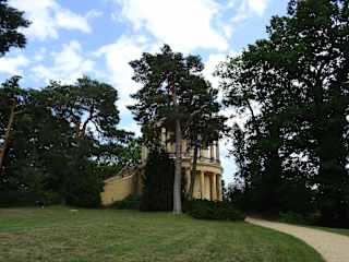 Das Belvedere liegt ein wenig abseits - vom Schloss Sanssouci kommend über die Orangerie ein Stück weiter - man sieht es bereits durch die Parkanlage schon von weitem und kann angenehm im Schatten der Bäume laufen. Hier waren wir während unseres Besuchs fast ganz alleine. Leider sind die Außentreppen aktuell abgesperrt - das Gebäude wirkt auch sanierungsbedürftig, was allerdings auch wieder in dem abgelegenen Ecke des Parks einen eigenen leicht morbiden Charme hat.