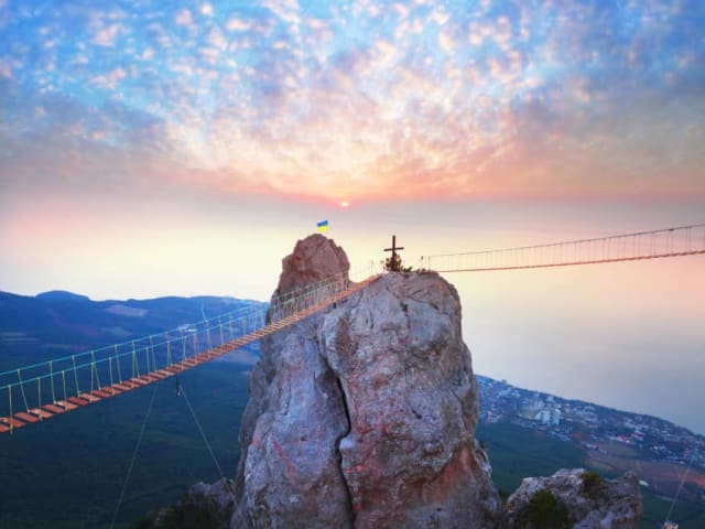 Der 1234 Meter hohe Berg Aj-Petri erhebt sich zu Füßen des für Sanatorien-Behandlungen bekannten Ortes Alupka. Der gigantische Berg gehört zum Krimgebirge und hat mit seinen spitzen Gipfelfelsen ein eigentümliches Aussehen. Sein ungewöhnliches Erscheinungsbild verdankt er seiner Entstehung als Korallenriff vor ca. 180 Millionen Jahren. Nach einer 3 km langen Fahrt mit der Luftseilbahn eröffnet sich Ihnen eine einzigartige Aussicht. Der Berg lädt zum Wandern, Radfahren oder Skifahren ein. Verfasst von HolidayCheck