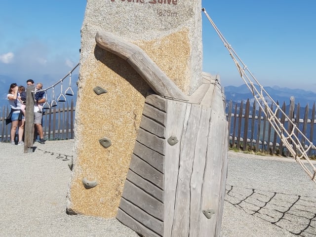 Nach unserer Rundwanderung Hohe Salve – Rigi –Salvensee Hohe Salve machten wir noch einen Spaziergang um den Gipfel, den sogenannten Gipfelpanoramaweg. Zuerst besuchten wir das Salvenkirchlein. Auf einer Tafel im Vorraum der Kapelle war die Chronik des Gotteshauses vermerkt. Die kleine Kirche wurde erstmals 1589 als Filiale der Brixener Kirche in der Chiemseer Matrikel erwähnt. Im Jahre 1612 erfolgte ein Neubau des Gotteshauses. Die erste heilige Messe wurde 1617 von Pfarrer Ambros Strasser gelesen. 1619 und 1640 wurde die Kirche durch Blitzschlag zerstört und in den Folgejahren um 1800 Gulden wiederaufgebaut. Am 24. August 1645 segnete der Fürstbischof von Chiemsee, Graf v. Spauer, die neu errichtete Andachtsstätte. Der eigentliche Kultgegenstand auf der Salve war stets ein "andächtiges Johanneshaupt"; damit liegt hier der im heutigen Tirol wohl bedeutendste Punkt der Johanneshauptverehrung vor. Das Salvenkirchlein ist die höchstgelegene Wallfahrtskirche von Österreich. Nebenbei erwähnt, der Name "Salve" bedeutet auf Lateinisch "Sei gegrüßt". Rund um den Gipfel führt der Sonnenuhrweg mit 15 verschiedenen Stationen. Hier erfährt man viel über die Geschichte der Zeitmessung und auch über die Sonnenstände. Da der Wind auf den Bergen ebenfalls eine große Rolle spielt, lädt die Windharfe auf der Hohen Salve alle Wanderer zur Rast ein, um ihr zu lauschen. Vom Panoramaweg aus, hat man einen phantastischen Rundblick auf angeblich mehr als 70 Dreitausender. Nach unseren kleinen Rundgang machten wir noch eine Kaffeepause im Gipfelrestaurant. Das Gipfelrestaurant ist bekannt durch die erste drehbare Panoramaterrasse von Österreich. Noch eine Besonderheit gibt es auf der Hohen Salve, das Gipfelrestaurant und die Kirche gehören zur Gemeinde Westendorf, der Sendemast jedoch zu Hopfgarten. Außerdem ist der Gipfel durch die beiden Gondelbahnen aus Söll und Hopfgarten erschlossen. Wer auf der Hohe Salve ist, sollte unbedingt den kurzen und nicht anstrengenden Gipfelpanoramaweg gehen.