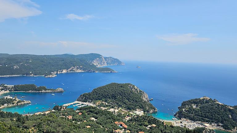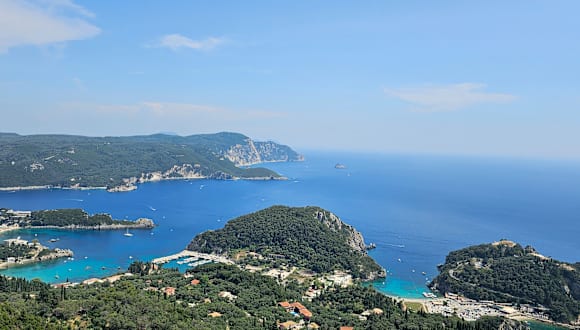 Vom Bergdorf Lakones oberhalb von Paleokastritsa haben Sie einen wunnderschönen Blick über die Bucht sowie die Landschaft Korfus