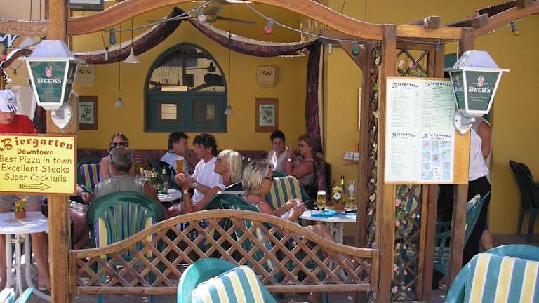 Neben dem Biergarten gibt es ein deutsches Restaurante, (nicht mehr unter deutsche Leitung), die Steaks und Pizzen wirklich gut aber genau so teuer wie in Deutschland
