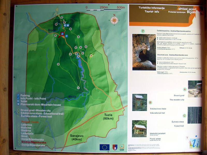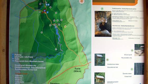 Das etwa 370 Hektar große Naturschutzgebiet "Bijambare" liegt nahe dem Nišici-Plateau an der Hauptverkehrsstraße Sarajevo – Tuzla. Es wird geprägt von einem immergrünen Wald aus unterschiedlichen Kiefernarten sowie Bergweiden. Die beiden Bäche, die durch das Gebiet fließen -Bradic und Bjelila- versickern in der verkarsteten Kalkerde und haben dort Karstbergklüfte, Dolinen und Höhlen gestaltet. Die Haupthöhle, durch die etwa 400 Meter gut beleuchtete Pfade führen, hat vier Hallen, von denen die größte einen Durchmesser von 60 Metern und eine Höhe von 15 bis 30 Metern hat. Sie ist mit Stalaktiten, Stalagmiten, Tuffstein und Säulen geschmückt. In der Höhle leben Fledermaus- und Grillenkolonien. 1967 fand man in ihrem Inneren auch antikes Werkzeug zur Steinbearbeitung und Überreste von Tieren. Homepage: http://www.zppks.ba/bijambare