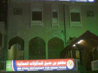 Hier kann man gutes indisches Essen in einer entspannter Atmosphäre geniessen. Man sitzt auf dem Fußboden in kleinen Separees, mit Teppich und Rückenkissen. Man darf keinen goldenen Löffel erwarten, dafür aber freundliches Personal und einfaches, aber gutes Essen. Das Restaurant ist leicht zu finden, im Zentrum neben dem Wadi/Parkplatz ist schon ein Schild, das den Weg weist: die Strasse rechst, 3 Minuten zu Fuß. Sehr zu empfehlen sind die Minz-Limonade und das Chicken-Nashib. Zum Schluß wird immer Kaffee und Datteln gereicht. Für das ganze Abendessen zu zweit haben wir 6 RO (ca 12 Euro) bezahlt.