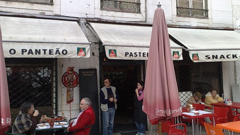Die sogenannte Snack Bar / Pastelaria O Panteao scheint ein echter Geheimtipp unter Einheimischen und dort lebenden Ausländern zu sein. Wir waren dort zufällig gestrandet, aber es war so gut, dass wir extra wegen des Essens noch einmal mit der Straßenbahn hingefahren sind. Das Reastaurant hat Innen- und Außenplätze und liegt an dem berühmten Flohmarkt Feira da Lada am Campo Santa Clara mit der Hausnummer 146. Ob es abends geöffnet hat weiß ich nicht definitiv, nehme es aber stark an. Ein Mittasmenu kostet 7 €. Die Karten hängen nur draußen neben dem Eingang an den Tafeln und sind auf portugiesisch, so dass man wenigstens ein paar Grundgerichte kennen sollte wie Bacalhao, Porco oder Polvo grelhada (sollte man alles mal dort probieren!). Aber der Aufwand lohnt sich. Es war mit Abstand das zarteste Fleisch, der zarteste Fisch und alles am besten gewürzt, obwohl wir auch gleiche und etwas gehobenere Restaurants probiert haben und 2 mal am Tag warm essen waren in 5 Tagen. Touristen haben wir dort keine angetroffen. Erreichbar ist das Lokal mit der Straßenbahn 28. Bei der Kirche Igreja Sao Vincente de Fora austeigen und zum Flohmarkt gehen. Es liegt linker Hand am Ende der Häuserzeile. Bei der Gelegenheit kann man sich auch noch das Pantheon un den täglich stattfindenden Flohmarkt ansehen, der aber samstags am Größten ist. Es liegt im Stadteil Alfama.