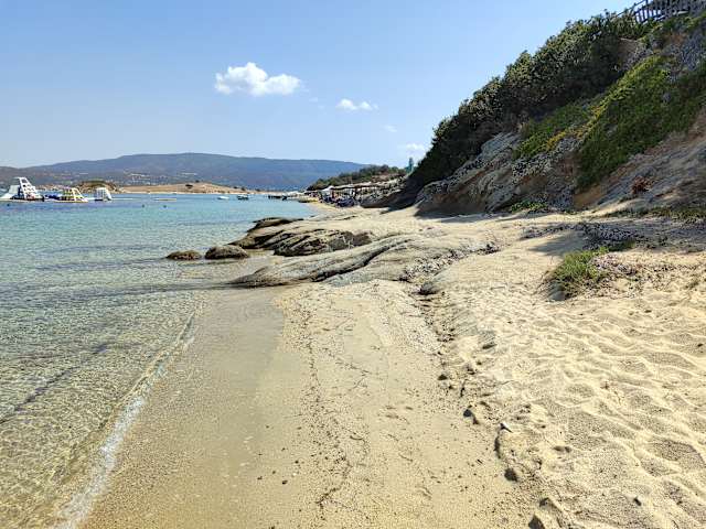 Wir waren von der Klarheit des Wassers in allen Schattierungen von türkis bis blau überwältigt. Heller großer Sandstrand mit bequemen bunten Plastikliegen und großen Sonnenschirmen. Ca. 10 Min. Bootsfahrt ab/bis Hafen Ouranoupolis Kosten € 5,- p. P. inkl. Liegen u. Schirm. Gute Taverne im hinteren Teil des Strandes (gegrillter Fisch).