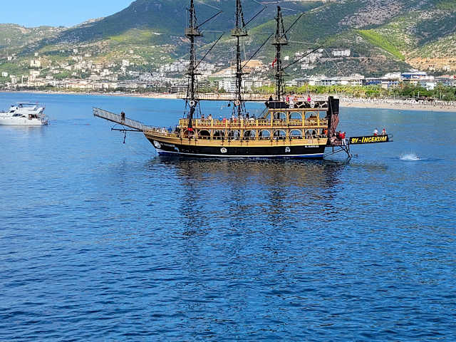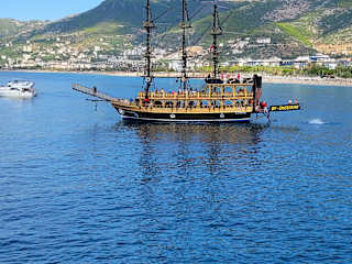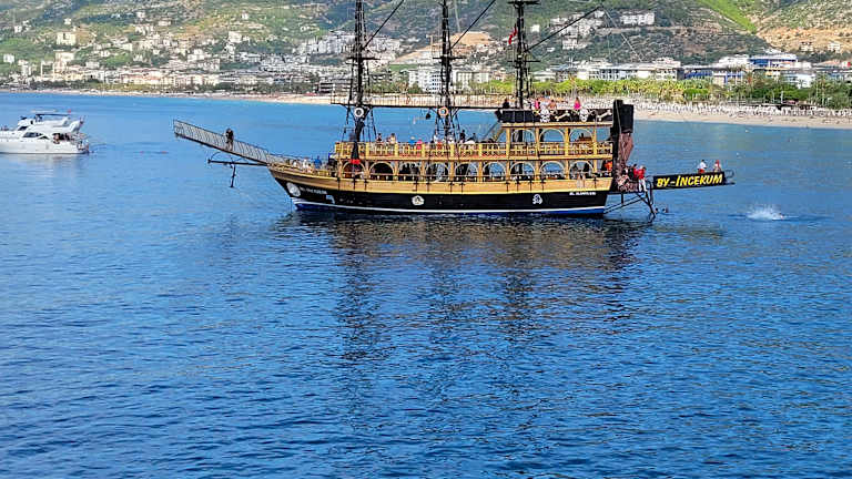 Eine Tour mit dem Piratenschiff lohnt sich auf jeden Fall! Es gibt verschiedene Ausflugsziele. Für einen Ausflug zu den Wasserfällen in Manavgat bezahlt man pro Person 20 €. Dabei sind die Schiffsfahrt und ein Mittagessen enthalten. Buchen kann man diese Auflüge bei Strandverkäufern. Die Crew war sehr nett und hat sich gut um die Gäste gekümmert und sie animiert. Außerdem konnten sie gut deutsch und russisch sprechen. Nicht geeignet für Menschen, die schnell seekrank werden. Für alle anderen selbst bei hohem Wellengang ein Riesenspaß!