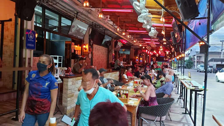 In Pattayas Stadtteil Naklua liegt der Borussia Park (BoPa). Von Pattaya auf der Naklua Rd her kommend auf der rechten Seite zwischen der Naklua 13 und Naklua 11 Alley ca 100m in die Nebenstraße rein (GPS 12.968767, 100.902200). Der BoPa ist ein deutsches Restaurant in dem man natürlich auch lecker Thai Food bekommt. Es gibt täglich 3 Tagesgerichte und wem das nicht entspricht steht eine reichliche Speisekarte zur Auswahl. Es wird zudem auch Essen zum Mitnehmen (Take Away/Eat to go) angeboten. Alle Tagesangebote sowie sonstige Gerichte ab 145 THB zum Essen im Restaurant; inklusive Eis/Kaffee/Tee/Espresso/Salat, Beilage/Sauce nach Wahl. Speisen werden von 09:00 – 21:00 Uhr angeboten, letzte Bestellung 20:30 Uhr. Samstag: Eintopf, Donnerstag: Pasta, Sonntag & Mittwoch: Mettbrote (sind nicht zum Mitnehmen), Freitag ist großer Grillabend, Hähnchen, Ente oder Schweinshaxe stehen zur Wahl, Vorbestellung nötig. Samstags zur Bundesliga werden verschiedene Grillwürste frisch zubereitet, dazu hausgemachter Kartoffelsalat. Sonntags gibt es Frühschoppen und ab 18:00 – 21:30 Uhr extra große Portionen eines ausgewählten Menüs für nur 140 THB. An den Wochenenden werden Sportveranstaltungen (BL/F1) Live bzw. in Konferenz übertragen. Sehr sauberes Lokal mit sportlicher Bestuhlung. Das Personal ist nett und freundlich, Hilfsbereit und auf Zack, natürlich kann es vorkommen das bei den Grillabenden etwas länger auf das Getränkt gewartet werden muss. Das Personal ist vollständig gegen Covid-19 geimpft. Free WiFi ist vorhanden und ein Poolbillard kann genutzt werden. Auch die Toiletten sind sehr sauber. Zudem verfügt der BoPa über eine In- und Outdoor Bar, Sportbar (akklimatisiert) sowie ein Gästehaus (extra Tipp).
