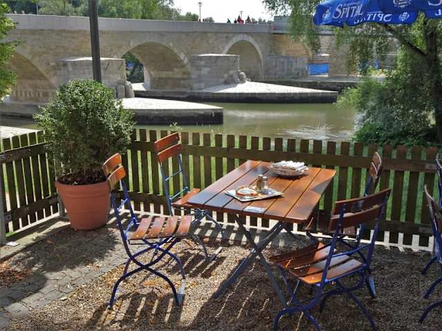 Der „Spitalgarten“ am Donau-Ufer unweit der Steinernen Brücke ist Teil des St. Katharinenspitals und gehört schon fast zu den Wahrzeichen der Stadt. Bereits 1350 belegen historische Rechnungen, dass an dieser Stelle Bier gebraut und verkauft wurde. Malerisch präsentiert sich der Biergarten mit schattenspendenden Bäumen direkt am Fluss und bietet nicht nur seine süffigen Biere vom Fass an, deren Entstehung man durch die gläserne Front der Brauerei verfolgen kann, sondern auch eine deftig-rustikale Küche: Brotzeiten mit Obatzda, Griebenschmalz, Leberkäse und „Limburger mit Musik“, begleitet von Meerrettich, roten Zwiebeln, Gurken und knusprigem Landbrot passen prima zum Abendessen oder zwischendurch, während die warme Küche des Spitalgartens Bayern und die Pfalz kulinarisch vertritt: Gesottene Ochsenbrust, resche Bierhaxe mit Sauerkraut und Reiberknödeln, Bauernente an Blaukraut, Käsespätzle mit Röstzwiebeln, Kalbsrahmgulasch, halbes Gockerl zum hausgemachten Kartoffel-Gurkensalat oder Spitalbratwurst mit Röstmalz – die Auswahl passt prima und die Preise sind in Anbetracht von Qualität und Portionsgröße überaus fair kalkuliert. In der kalten Jahreszeit sitzt man im Spitalgarten in gemütlichen Gaststuben, die beispielhaft zeigen, dass die Attribute „modern“ und „traditionell“ sich nicht grundsätzlich ausschließen. Flinker und freundlicher Service, schnörkellose Küche, Pole-Position an der Donau und dazu ein frisches Bier aus der eigenen Brauerei – Regensburg von seiner schönsten Seite!