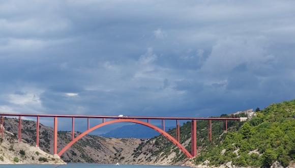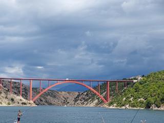Auf der Landstraße von Starigrad nach Zadar muß man diese Brücke überqueren. Es besteht die Möglichkeit jeweils vor der Brücke zu parken, um das Bauwerk zu bestaunen. Es lohnt sich, man sollte schon bis Brückenmitte laufen und die Aussicht zu genießen auch um ein paar Fotos zu schießen. In der Ferne ist auch die große Autobahnbrücke, Bauwerk aus Beton gut zu sehen.