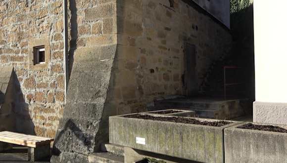 Direkt vor dem historischen Milchhäusle ist ein schöner Brunnen. Unter dem Gebäude befindet sich ein wichtiger Wasserspeicher. Auf Grund seiner geschichtlichen, ortsbildprägenden Bedeutung sollte die Bausubstands erhalten werden. Deshalb wird er auch saniert. Aus einer halbrunden Rinne läuft das Wasser, darunter befindet sich Brunnentrog. Von dort über einen Auslauf ins Freie.