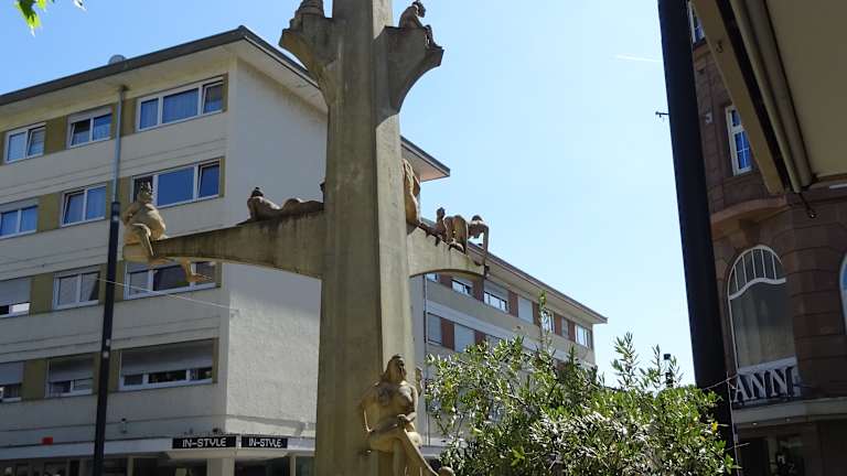 Eine Stele aus Stahl des Künstlers Erich Hauser war Start unseres Stadtrundganges. Leider ohne Wasser und das Becken mit einigem Müll - nicht wirklich ansprechend.