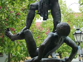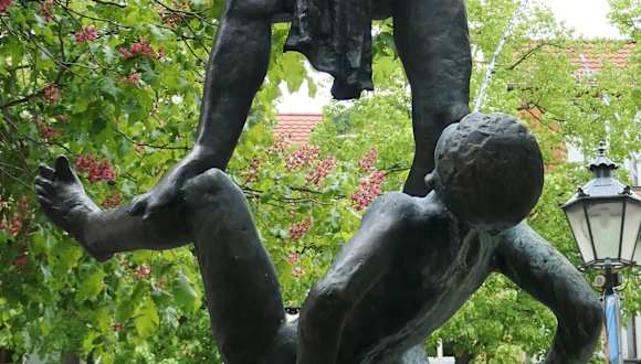 Auf dem Brunnen, der auf dem Wenigemarkt steht, befindet sich die Darstellung zweier Buben, die miteinander raufen. Der Brunnen ist schön anzusehen und ein beliebtes Fotomotiv.