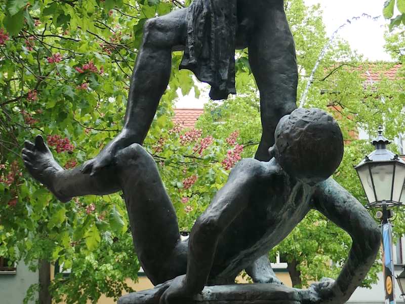 Auf dem Wenigemarkt in der Altstadt von Erfurt findet man unter Bäumen einen Brunnen. Auf diesem Brunnen ist die Bronzeskulptur mit zwei raufenden Knaben. Es ist ein durchaus netter Brunnen und wenn man am Wenigemarkt ist, so bietet es sich an, dass man sich auch einmal diesen Brunnen mit den raufenden Jungs anschaut.