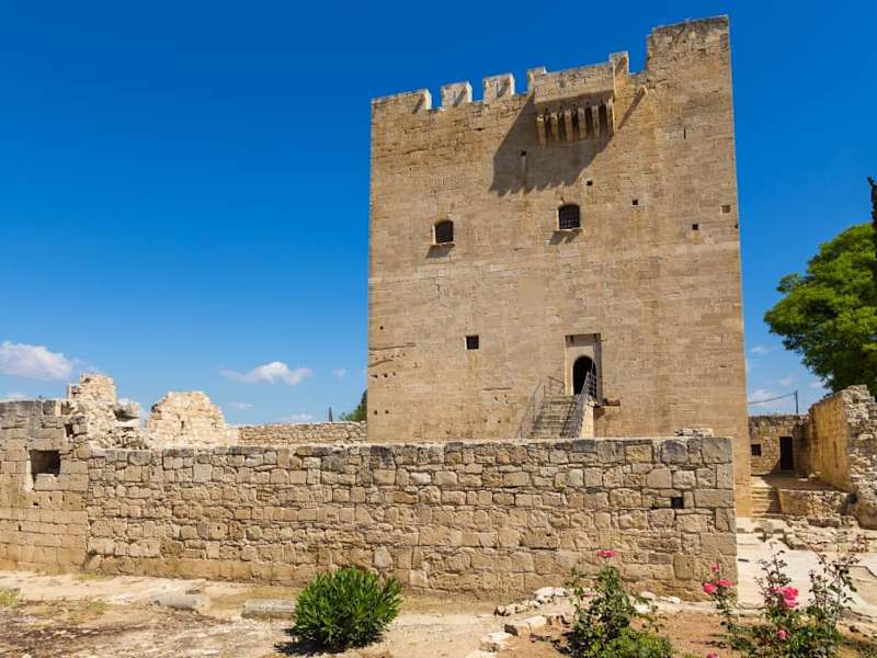 Kurz vor Limassol, in der Ortschaft Kolossi liegt die alte Burg Kolossi, Stammsitz der Templer und später der Ritter des Johanniter Ordens. Der Geschichte nach soll König Richard Löwenherz die Prinzessin Berengaria von Navarra, Tochter des Königs von Navarra, hier geheiratet und zur Königin gekrönt haben. Im Mittelalter wurde hier ein süsser Dessertwein hergestellt, der Commandaria heisst und noch heute bekannt ist. Heute ist die Burg noch gut erhalten und drum herum sind viele Grundmauern ausgegraben worden, die auf die Grösse der Anlage schliessen lässt. Von der obersten Plattform der Burg, die man über viele Treppen erreicht, hat man einen tollen Ausblick auf die Umgebung. Der Eintritt kostet 1,70 €.