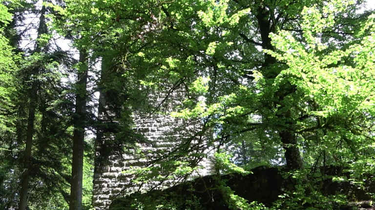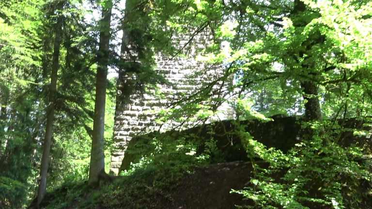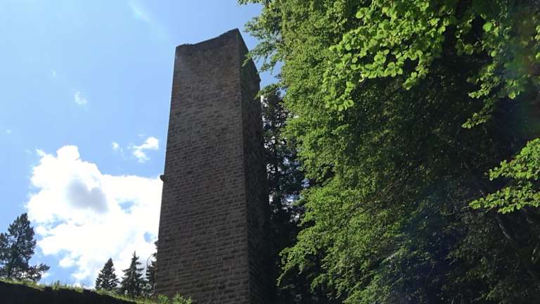 Die Bauweise des Bergfriedes zeigt, dass die Burg in der Zeit der Stauferkaiser erbaut wurde. Die erste nachweisbare Erwähnung der Burg stammt aus dem Jahr 1287 durch Beurkundung. Im Bauernkrieg, 1525, wurde die Burg zerstört. Im Jahr 1970 kaufte die damals noch selbständige Gemeinde Bösingen die vom Verfall bedrohte Ruine. Der über 30 Meter hohe Turm, mit ca. acht auf acht Metern Grundfläche und drei Meter dicken Mauern, ist seit der Renovierung 1973/74 über eine Wendeltreppe begehbar und wird als Aussichtsturm genutzt. Die Burgruine ist heute ein Kulturdenkmal. Adresse: 72285 Pfalzgrafenweiler. Webseite: https:// www. pfalzgrafenweiler. de/tourismus-freizeit/sehenswuerdigkeiten/ruine-mandelberg Geodaten: GHGX+2V Pfalzgrafenweiler