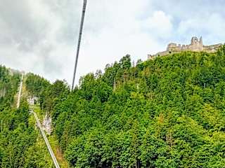 Direkt an der Strasse von Reutte nach Heiterwang gelegen. Zur Hängebrücke, laut Prospekt die längste Fußgängerhängebrücke der Welt ( über 400 Meter lang ) gelangt man über einen leichten Wanderweg in ca. 20 Minuten. Die Brücke zieht sich 114 Meter hoch über das Tal. Am Eingang zur Brücke befindet sich auch die Burgruine Ehrenberg. Auf der anderen Seite kann man das Fort Claudia bestaunen. Wer noch ein paar Höhenmeter und eine noch bessere Aussicht möchte, der kann noch hoch zum Schlosskopf ( nochmals ca 150 Höhenmeter). Die Brücke (Highline179) ist kostenpflichtig. 8 € pro Person, der Rest umsonst. Unten am Parkplatz gibt es auch noch ein Burgenmuseum und eine gemütliche Wirtschaft. Die Wanderung zu den Ruinen und Brücke kann man auch im Winter machen, ganzjährig geöffnet.