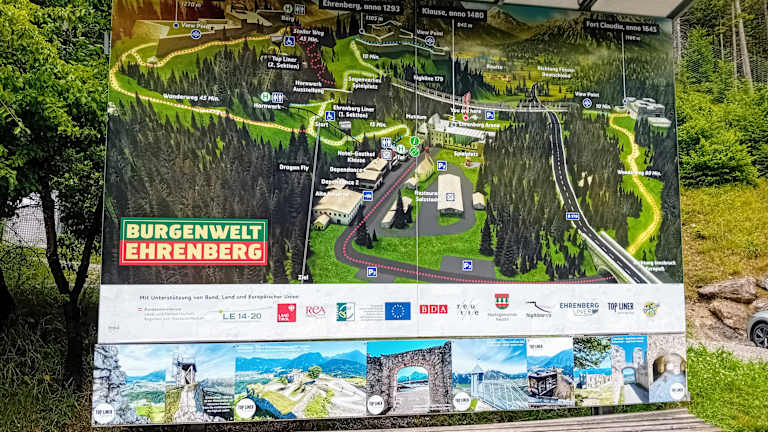 Wenn man in Reutte auf die Fahrt zum Fernpass ist, sieht man sie bereits rechterhand in luftiger Höhe. Die Burgruine Ehrenberg. Man muss aufpassen, dass man nicht die kleine Abfahrt zum Parkplatz verpasst. Ein Umdrehen ist erst einige Kilometer später auf dem Parkplatz des Restaurants Zugspitzblick möglich. Die Burgruine selbst und auch die unmittelbar daneben liegende Hängebrücke Highline 179 ist immer wieder einen Ausflug wert. Auch für Kinder geeignet.