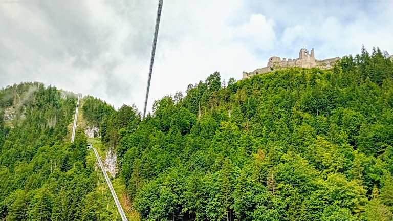 Burgruine und Hängebrücke mit schöner Aussicht