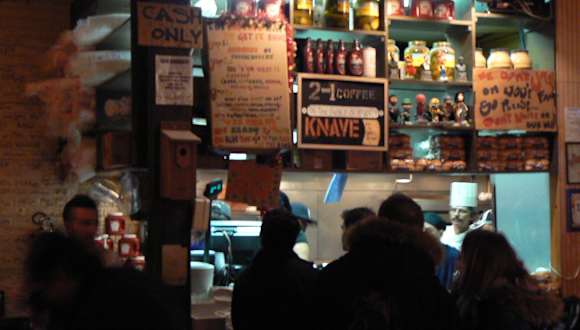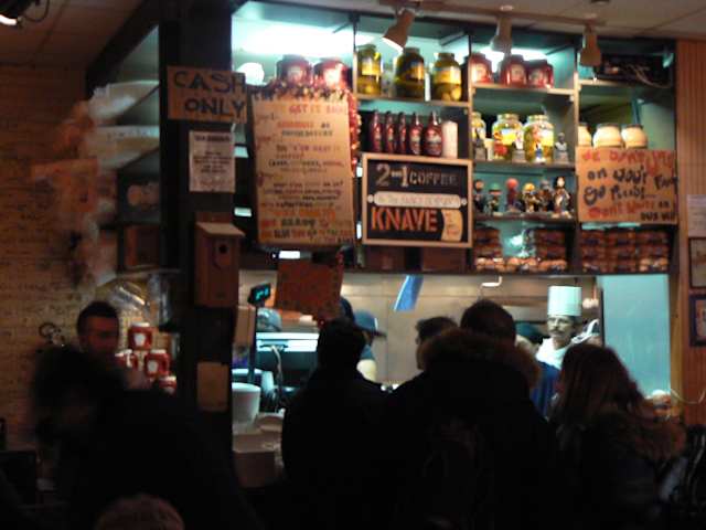 Abgesondert hinter Vorhängen von Fußboden zur Decke in der Vorhalle des Hotels von Le Parker Meridien ist das Joint das "schmutziges kleines Geheimnis" für Gäste. Sobald Sie den Eingang ausfindig machen konnten, erwartet Sie das Burger Joint mit seinem eignenen Flair.Mit den Unecht-Holztäfelung, den Vinylkabinen, und einigen sportseitigen zu den Wänden gebundenen Fotos. Das abgenutzte schmierige-spooniness ist unheimlich überzeugend. --> Überzeugen Sie sich selbst!!!