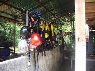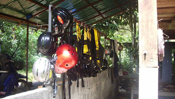 Auf Phuket wird im Dschungel "Cable Ride" angeboten. Allerdings ist das dort noch ziemlich unbekannt, also ein "Geheimtipp". :O) Selbst unser Taxifahrer hatte Mühe die Station zu finden. Diese liegt in der Nähe der Ton-Sai Wasserfälle. Ca. 1 km davor, von Bangtao kommend, steht ein Schild, das den Weg nach links weist. Die Wegweiser sind etwas schlecht zu sehen, also man muss schon aufpassen, dass man nicht vorbei fährt. Irgendwann war die Straße zu Ende und wir mußten zu Fuß weiter gehen. Den Taxifahrer baten wir zu warten. Wir erreichten dann die etwas verlassene Station im Dschungel und wurden nur von zwei Hunden begrüßt. Dem Taxifahrer war das Ganze offenbar nicht ganz geheuer, denn er kam nach kurzer Zeit ebenfalls zur Station. Einsam an Stangen aufgereiht hingen die Ausrüstungen, die in einem Top Zustand waren. Wir fanden an der Station eine Handynummer, die dann unser Fahrer anrief. Keine 10 Minuten später surrte es durch den Dschungel und die Mädels vom Cable Ride Team waren da. Der Spaß kostet 1.950 Bath pro Person, den konnten wir jedoch auf 1.800 Bath verhandeln. Und dann gings los mit dem Anlegen der Ausrüstung und einer Einweisung am Übungskabel. Als alles klar war konnten wir starten, dass heißt vorerst 15 Minuten straff durch den Dschungel den Berg rauf. Oben angekommen ging es auf die erste Plattform. Sichern, einklinken, entsichern und ab geht die 1.200 m Fahrt über 15 Kabel von Mammutbaum zu Mammutbaum, in Höhen, in denen man sonst nur Vögel im Dschungel trifft. Wir waren ungefähr 1,5 Stunden unterwegs. Die Mädels wirkten sehr geschult und achteten die ganze Zeit auf Sicherheit. Zum Abschluss gab es noch einmal Wasser (eine Flasche bekommt jeder schon am Anfang mit der Ausrüstung) und Ananas. Es waren alle super nett und das Cable Ride - schon der Dschungelatmosphäre wegen, ein besonderes Erlebnis. Geöffnet ist die Station immer ab 9.00 Uhr. Einfach hin fahren und los gehts. Das bereut man ganz sicher nicht, und die Aktion ist absolut ihr Geld wert. Wer ein bischen Nervenkitzel mag, Natur einmal auf eine ganz besondere Art erleben möchte, sollte sich das nicht entgehen lassen.
