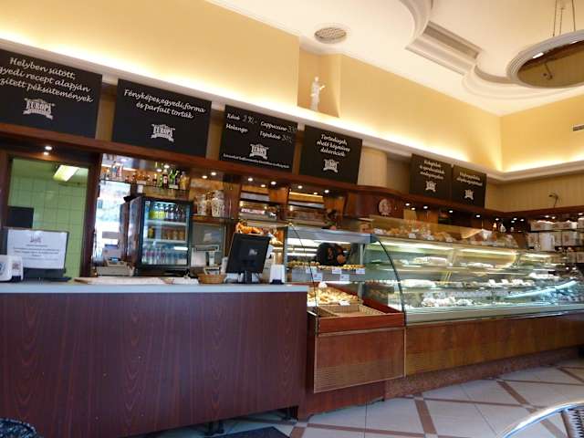 Die Konditorei stellt selbst sehr leckere Torten her. Es gibt den Ladenverkauf mit Stehcafe (Sahnestücke ab 250 ft/1, 10,Cappuccino 300ft/1, 30€) und nebenan das gemütliche Cafe im Sommer mit kl. Außenbestuhlung (Sahnestücke ab 350ft/1, 50€/Cappuccino 450ft/2€). Es gibt auch Kleinigkeiten (deftiges) zu essen bzw. kann dort auch frühstücken. Im Stehcafe ist ca. 30 % günstiger- leider gibt es dort keine belegten Brötchen. Die Einrichtung kann mit den kuk-Cafes nicht mithalten, dafür sind die Preise günstig und die selbst hergestellten Torte himmlisch. Adresse: Szent Istvan körut, schräg gegenüber dem Theater/Schauspielhaus; neben Schlecker, 2 Min vom NH Hotel Haltestelle: Jaszal Mari (vor der Margareten Brücke - Linien 2, 4,6);