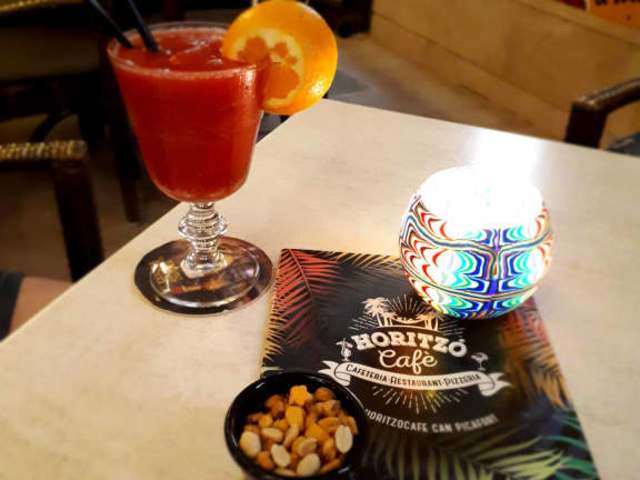 Das Cafe Horitzo ist direkt an der Promenade gelegen und für jeden der dort her läuft gut sichtbar. Eine lange Theke zieht sich duch das Cafe. Links und Rechts von der Theke kann mann sitzen genauso wie im oberen Teil. Es bietet sich genug Platz und wem es drinnen zu heiss ist kann sich auch draussen vor dem Cafe setzten denn dort gibt es auch noch Sitzmöglichkeiten. Im Cafe gibt es einen Billardtisch wo die Kinder gut spielen können. Im großen wird dort viel Spanische Musik gespielt aber auch anderes. Die Preise sind sehr günstig und es gibt eine große Auswahl an Getränken. Das Personal ist sehr freundlich und hilfsbereit und immer sehr gut gelaunt.Auch an scherzen fehlt es ihnen nicht. Es öffnet nach meinem wissen um 10 uhr morgens und geschlossen wird wenn alle Leute weg sind. Es lohnt sich auf jeden Fall mal ein Blick reinzuwerfen und einen Cocktail zu schlürfen. Sie werden es nicht bereuhen. Bye Daniela