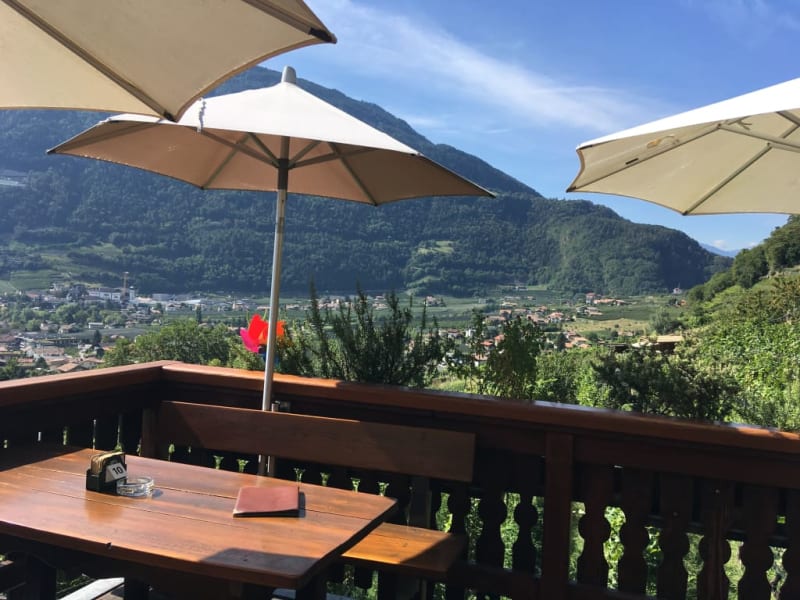 Bei meiner Wanderung von Dorf Tirol nach Algund habe ich mal wieder eine Pause im Café Konrad eingelegt. Die Bedienung war sehr nett und flott, und der Ausblick von der Terrasse ist immer noch toll.