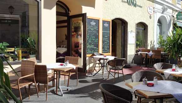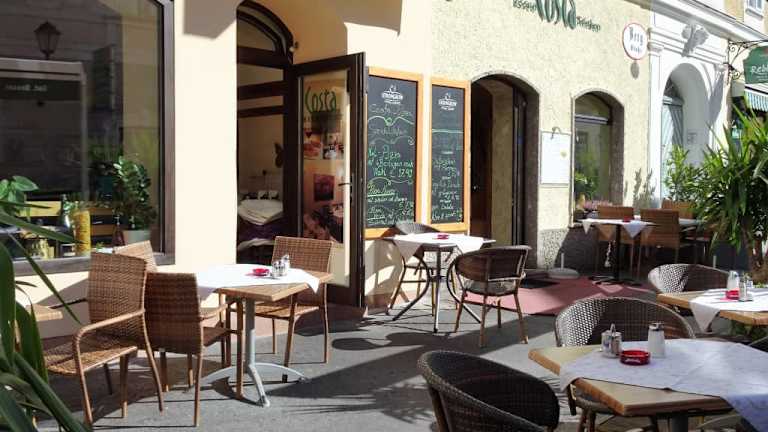 An der Bergstraße der Salzburger Neustadt liegt das Restaurant „Costa“, das auf seiner sonnigen Terrasse und in zwei Gasträumen eine in erster Linie italienisch inspirierte Küche mit Salaten, Pizzen und Pasta-Gerichten anbietet, daneben auf seiner Speisekarte aber auch Schnitzel in allerlei Variationen vorhält. Bei meinem Besuch bestellte ich eine „Pizza Prosciutto“ zum Preis von 9,20 Euro und bekam diese nach einer angemessenen Zeit serviert: Knuspriger Boden, dabei ein „fluffiger“ Teig, üppiger Belag und überdies im Steinofen gebacken – absolut nix zu meckern! Vielleicht gehört das Restaurant Costa nicht gerade zur Startbahn für kulinarische Höhenflüge, ist mir aber mit seiner Einrichtung im mediterranen Bistro-Stil, fairer Preisgestaltung und nicht zuletzt einem herzlich-zugewandten Service in guter Erinnerung geblieben.