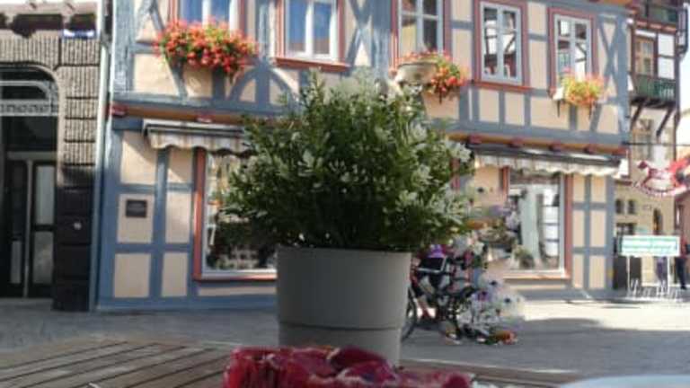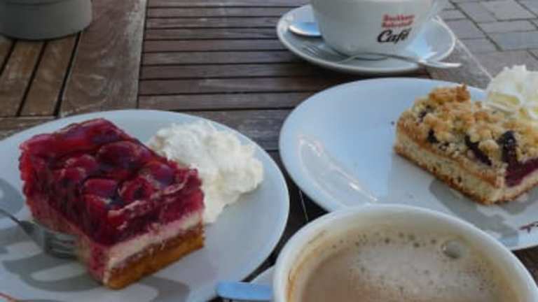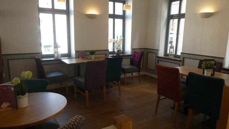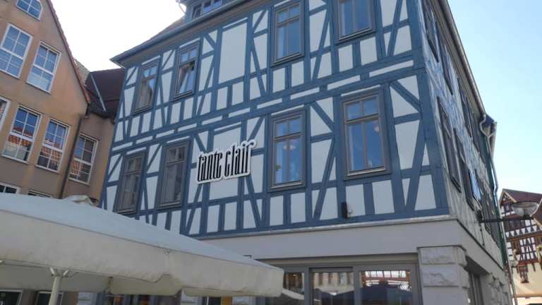 Das Café Tante Clair befindet sich in Schmalkalden am Soldatensprung 3A, nur ca. 100 Meter vom Altmarkt bzw. ca. 150 bis 200 Meter von der Kirche St. Georg entfernt. Es ist eine Niederlassung der Bäckerei-Kette „Backhaus Nahrstedt“. Das Tante Clair hat eine schöne Lage. Als wir im September 2020 hier waren, waren die Plätze im Café gesperrt, aber an den Tischen im Freien, vor dem Café, konnte man sitzen. Den Kaffee und Kuchen gab es in Selbstbedienung. Wir saßen hier sehr schön vor dem Café mit tollem Blick auf die Gebäude rundum. Vom 1. Stock im Café hat man zudem einen besonders schönen Blick auf die umliegenden Bauwerke. Kaffee und Kuchen waren o.k. (normaler Nahrstedt-Standard).