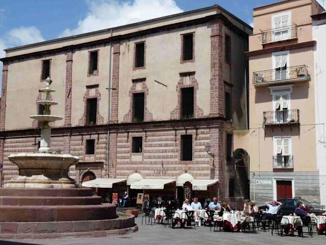 Bosa ist ein ganz entzückender Ort an einem Flüsschen mit einem Kastell auf einer Anhöhe und einem breiten Strand. Neben der Palmenpromenade am Fluss gibt es noch eine Straße voller Geschäfte und Restaurants, die durchs Städtchen führt. Zwischendrin ist ein Platz mit einem hohen Brunnen aus hellem Stein - dort liegt das Caffé Don Carlo. Unten ist es ein lebhaftes Lokal, oben ein leerstehender alter Palazzo. Es zeichnet sich durch seine Lage aus - denn hier kommt einfach jeder vorbei: Touristen auf dem Weg zum Castell, Einheimische beim Flanieren oder Schulklassen auf Ausflugsfahrt. Man sitzt mitten im Getümmel und es gibt immer etwas zu sehen. Guter Cappuchino, freundlicher, würdiger Kellner, zivile Preise. Dort könnte ich stundenlang sitzen...