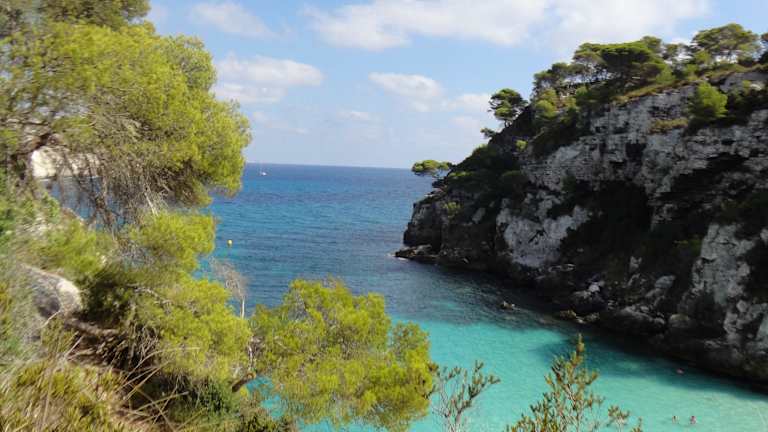 Um zur Cala Macareletta zu gelangen muss man einen längeren Fußmarsch in Kauf nehmen, erst zur Cala Macarella und von dort aus über einen steilen Weg und Steinstufen hinauf und wieder runter zur Cala Macarelleta. Die Bucht ist traumhaft schön, tolles türkisfarbenes Wasser. Leider völlig überfüllt, man liegt Handtuch an Handtuch...