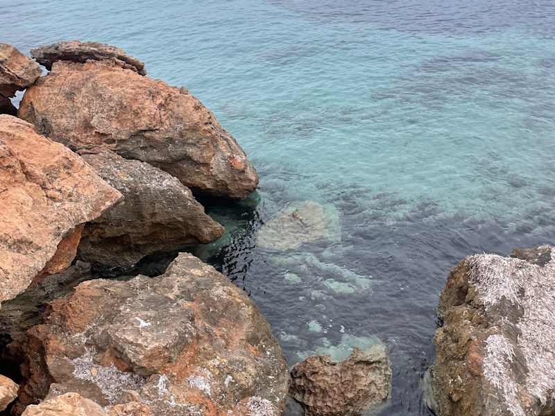 In der Bucht Cala Molto zieht es nicht so wie in der Bucht Cala Agulla und man kann auch schon Anfang April sehr gut im Flachen Wasser schwimmen da die Wassertemperatur da schon angenehm ist.