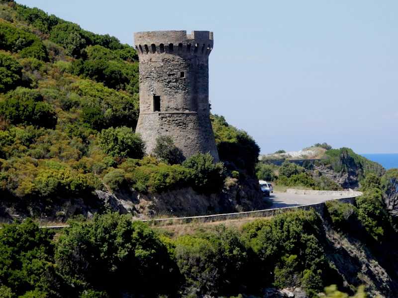 Das Cap Corse ist 40 km lang, 10-15 km breit und wird gern auch als Korsika in Miniatur bezeichnet. Wie eine Kompassnadel zeigt die Halbinsel nach Norden. Besser fährt man gegen den Uhrzeigersinn (lt. unserem Reiseleiter) von Bastia aus um das Cap Corse herum nach Saint Florent. So hat man immer ideale Lichtverhältnisse zum Fotografieren, fährt außerdem zur Meerseite und hat spektakuläre Blicke in die Tiefe. Die Halbinsel ist vielfältig und abwechslungsreich, man findet zahlreiche Badebuchten, Genuesentürme, sowie zerklüftete Küsten wo die Strasse teilweise hoch über dem Meer führt. Weiter westlich bietet sich auf dem Col de Serra an der alten Mühle (Moulin Mattei) ein fantastischer Blick. Die Enge der Straße ist noch schlimmer als in der Scala di Santa Regina und es ist schon sehr schmal für das eigene Fahrzeug und teilweise geht es steil hinab zum Meer. Eine traumhaft schöne Tour und für mich das "Highlight" der Reise, aber sicher nichts für schwache Nerven !!!!
