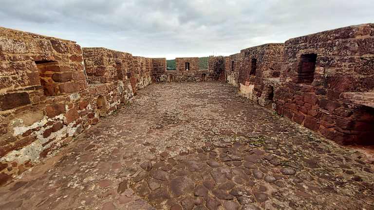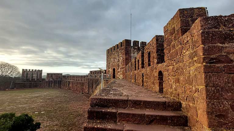Das Castelo dos Mouros – die Burg der Mauren (oder auch Castelo de Silves – die Burg von Silves genannt), ist das Wahrzeichen von Silves. Die aus rotem Sandstein und Backstein errichtete Burganlage thront über der Altstadt. Die Burg wurde zwischen dem 9. und 12. Jahrhundert von den damals hier herrschenden Mauren errichtet und ausgebaut. Zu dieser Zeit war Silves wohl eine prächtige Stadt und soll im 12. Jahrhundert mehr als 15.000 Einwohner gezählt haben (in manchen Quellen wird sogar eine Bevölkerungszahl von ca. 25.000 angegeben). Vor dem Eingang zur Burg steht eine Statue von König Sancho I., der mit einem Heer von Kreuzfahrern 1189 die Mauren aus Silves vertrieben. Jedoch 1191 kamen die Mauren zurück in die Stadt und erst 1242 und 1246 gelang es schließlich, dass die Mauren endgültig aus Silves und der Algarve vertrieben wurden. Aber mit der Vertreibung der Mauren begann auch der Abstieg und Verfall von Silves. Die Burg von Silves ist die größte und bedeutendste Burg der Algarve und ist trotz großer Schäden (vorallem bei dem verheerendem Erdbeben vom 01.11.1755) die wohl besterhaltene Burganlage an der Algarve. Bei diversen Renovierungsarbeiten wurde jedoch teilwese nicht immer so recht auf historische Genauigkeit Wert gelegt und so wurde manches nicht originalgetreu wiedererrichtet. Trotzdem vermittelt das Castelo dos Mouros einen recht guten Eindruck einer maurischen Burganlage. Man kann auf der Burgmauer entlang gehen, alle Türme sind über die Befestigungsmauer miteinander verbunden und man hat bei einem Rundgang über die Burgmauer und von den Türmen aus einen weiten Blick über Silves und die Umgebung mit den Bergen der Serra de Monchique, dem Monchique-Gebirge (abhängig von den jeweiligen Sichtverhältnissen). Der Eintritt, den man bezahlen muss, ist aus meiner Sicht durchaus i.O. (wir zahlten im März 2019 einen Betrag von € 2,80 pro Person).