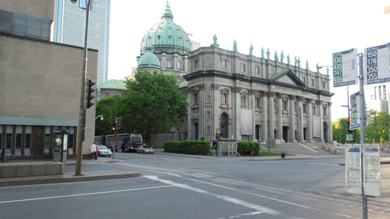 Die Bau der Kathedrale begann 1875 und sie wurde 1894 als Saint James Cathedral geweiht. Der damalige Bischof Ignace Bourget gab sie als Maßstab-treue Kopie des Petersdoms in Rom in Auftrag. 1955 erhielt sie von Papst Pius XII den heutigen Namen. Außen stehen anstelle der 12 Apostel (wie am Petersdom) die Schutzpatrone der 13 Montrealer Pfarreien. Innen sind die Ähnlichkeiten zum Vorbild in Rom nicht zu übersehen. Durch den kleineren Maßstab (1/3) macht sie aber nicht den gleichen imposanten Eindruck. Einen Besuch ist die Kathedrale aber sicher trotzdem wert.