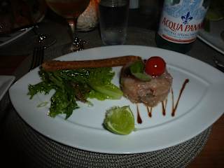 Catherine's Cafe liegt am schönen ruhigen Pigeon Beach, English Harbour, Antigua. Direkte Strandlage, sehr schöne Einrichtung und geschmackvolle Dekoration des Lokales. Öffnungszeiten: Mittwoch bis Montag: Mittags Mittwoch Abend: Live Musik Freitag Abend: Dinner Night Wir reservierten für 4 Personen am Freitag Abend einen Tisch (war auch notwendig-Lokal ausgebucht!). Sehr freundlicher Empfang und nettes Gespräch mit dem Lokalbesitzer. Wir nahmen Aperitif an der gut sortierten Bar (lustiger Barkeeper). Unser Essen war wirklich excellent (Thunfischcarpaccio, Salate, gegrillte Calamari, geschmortes Hühnchen mit Bandnudeln, Steak) und die dazu passenden Weine top! Alle Speisen waren sehr schön auf den Tellern präsentiert - gehobene Küche! Dementsprechend verhält sich auch das Preisniveau. Ein sehr gelungener Abend!