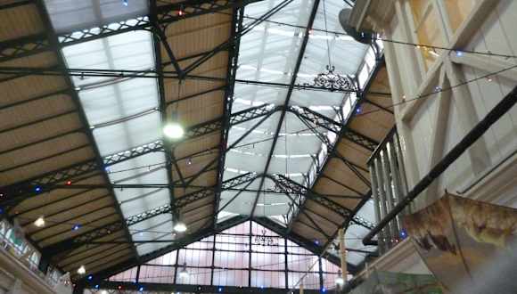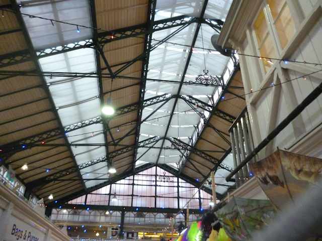 Der überdachte Markt ist ein lustiges Durcheinander. Es gibt Imbisse mit Fish and Chips, Gyros, Thai, Eiscreme aber auch Käse, Fleisch, Obst, Elektronik, Souvenirs, Nippes, Stoffe, altmodische Kleidung, eine lustige Mischung