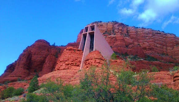 Die römisch-katholische "Chapel of the holy cross (Kapelle des Heiligen Kreuzes)" befindet sich zwischen zwei roten Felsen am Fuße eines etwa 450 Meter hohen Hügels im Coconino National Forest südlich der Innenstadt von Sedona. Das Gotteshaus wurde 1955/56 auf Veranlassung der örtlichen Rancherin und Bildhauerin Marguerite Brunswig Staude errichtet. Kennzeichen des Sakralbaues ist ein von dem aus San Francisco stammenden Bildhauer Keith Monroeo gestaltetes 27,40 Meter hohes Kreuz in seiner Mitte. Das Kircheninnere ist, abgesehen von zwei Wandteppichen, schmucklos. Die Kapelle bietet Platz für bis zu 150 Personen. Homepage: https://chapeloftheholycross.com/