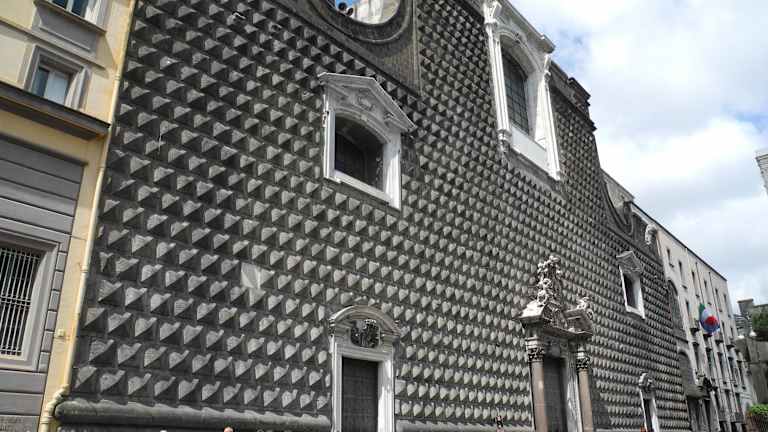 Die Kirche liegt an der Piazza Gesù Nuovo in der Altstadt. Interessant und geheimnisvolle ist die schwarze Fassade die ein Pentagramm und mysteriöse Zeichen haben soll. Erbaut wurde die Barocke Kirche im 16. Jahrhundert. Besonders sehenswert sind die üppige barocke Innenausstattung aus dem 17. und 18. Jahrhundert und das schöne Fresko von Solimena.