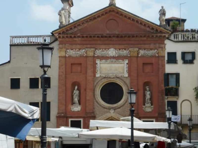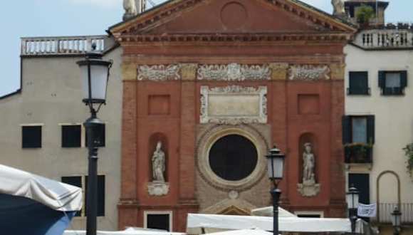 Der Geschichte nach soll die Kirche an der Piazza dei Signori im 5. Jahrhundert von Siedlern aus Padua gestiftet worden sein, die auf den Inseln Rivoalto und Dorsoduro Siedlungen gründeten, die heute zu Venedig gehören. Zweifelsfrei belegt ist die Existenz der Kirche im Jahr 1190, aus hier in offiziellen Dokumenten eine Kirchengemeinde erwähnt wurde. Die Fassade der Kirche enthält Elemente aus späteren Jahrhunderten und drängt sich zwischen Wohn- und Geschäftsgebäude, die an dieser Stelle im Zentrum der Stadt eng beieinanderstehen.