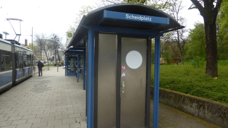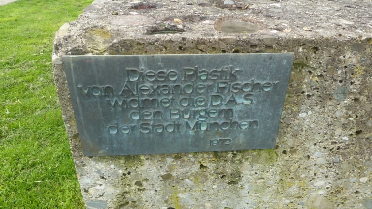 An der Straßenbahnschleife am Scheidplatz in Schwabing -West steht eine in den Jahren von 1969 bis 1972 von Alexander Fischer geschaffene Christophorus-Figur. So hat der Bildhauer Fischer(1903 -1981) im Jahr 1969 einen Wettbewerb des D.A.S. zur Gestaltung des Patrons Christophorus gewonnen. Die D.A.S. Aktiengesellschaft bestand von 1928 bis 2015. Gegründet wurde die D.A.S. 1928 unter dem Namen D.A.S. Deutscher Automobil Schutz Aktiengesellschaft in Berlin als Rechtsdienstleister für Autofahrer. Der Heilige Christophorus ist der Schutzpatron der Reisenden, woran die Christophorus-Plakette in Autos erinnert. Auch die Deutscher Automobil Schutz Aktiengesellschaft wollte den Heiligen Christophorus ein Denkmal widmen. Das Denkmal von Fischer wurde vom Auftraggeber verworfen und es wurde ein neuer Wettbewerb ausgeschrieben. Fischer war sehr verärgert und stellte daraufhin im Frühjahr 1970 eine Gipsversion seines Denkmals am ursprünglich vorgesehenen Standort auf. Nach Aufforderungen des D.A.S., musste er das Modell jedoch wieder entfernen. Fischer stellte dann sein Werk auf der gegenüberliegenden Straßenseite vom Haus der Kunst auf. Seinen endgültigen Standort fand das damals umstrittene fertige Christophorus Denkmal nach einigen Streitigkeiten mit der D.A.S. im Jahr 1972 schließlich doch noch am Scheidplatz. Christophorus wird oft dargestellt als Riese mit Stab, mit Kind auf den Schultern, und durchs Wasser gehend. Er gilt auch als einer der 14.Nothelfer.Christophorus wird deshalb auch bei Seuchen, Epilepsie, den unerwarteten Tod, körperliche Leiden und Unwetter angerufen. Der Scheidplatz wurde nach Karl Friedrich Scheid (1906 – 1945) benannt. Karl Friedrich Scheid verhandelte am Kriegsende am 4. Mai 1945 mit amerikanischen Truppen über eine Übergabe des Krankenhauses, dessen Notquartier war in Tegernsee. Kurz danach wurde er am 4.Mai 1945 von der SS aus dem Hinterhalt erschossen. Am 8. Mai 1945 endete der Zweite Weltkrieg in Europa durch die vollständige Kapitulation der deutschen Wehrmacht.