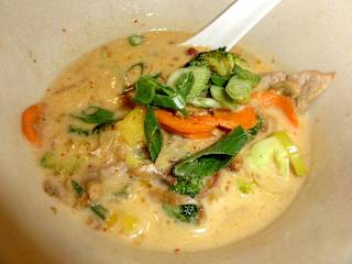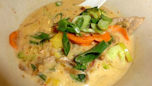 Erst im letzten Jahr hat in Bremens Innenstadt ein bemerkenswertes Restaurant aufgemacht – das „Chu Ba“. Am Beginn der Knochenhauerstraße macht es mit seiner dunklen Rauchglasfassade und goldenen Lettern, die das Restaurant als „Brasserie de Saigon“ ausweist, einen eleganten Eindruck. Die Küche ist inspiriert von der Kindheit des Besitzers, der in Saigon auswuchs und in die Woks und Kochtöpfe seines Onkels blicken konnte, der dort ein kleines Restaurant betrieb – so erklärt sich auch der Name des Restaurants: „Chu Ba“ ist eben der „Onkel Ba“. In Familientradition mit originalen Rezepten kann man heute in Bremen die wirklich authentische Kochkunst Vietnams genießen, die aber als „Fusionsküche“ auch Nachbarländer und das ferne Europa einbindet. Die Speisekarte besteht aus einem „Basement“, das als Tischset ausliegt und um eine wöchentlich wechselnde Mittagskarte und eine erweiterte Abendkarte ergänzt wird. Die Auswahl umfasst klassische Nudelsuppen nach Hausrezept („Pho“), Currys und viele Gerichte, die mit Zutaten wie langen Korianderblättern, Süßkartoffeln, Mangold, Thai-Basilikum und Kokosmilch ein ungewohntes Geschmackserlebnis versprechen. Ich bestellte aus der Wochenkarte ein „Scharfes Thai-Curry mit Schweinefleisch, Ananas und Brokkoli“ zum Preis von 7,90 Euro und bekam neben einer Schale mit duftendem Jasmin-Reis mein gewünschtes Curry, das mit knusprigem Schweinefleisch, Gemüse, frischen Kräutern und Ananas in leicht geschärfter Kokosmilch einfach ein Gedicht war. Der Service des „Chu Ba“ begleitete mich ausgewählt zuvorkommend, war ständig präsent und hätte nicht besser sein können. Wem die gastronomische Stilrichtung zusagt, dürfte sich im „Chu Ba“ mehr als wohl fühlen – volle Punktzahl für ein tolles gastronomisches Konzept!