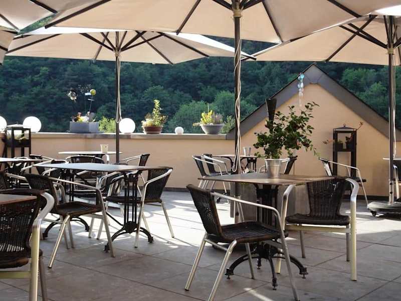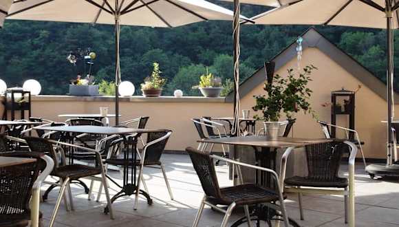 Das Restaurant „Comte Godefroy“ gehört zum „Hotel de la Sûre“ und befindet sich in einem der ältesten Gebäude des Landes aus dem Jahr 1103. Auf zwei Etagen und einer großen Sonnenterrasse mit Panoramablick über die Flussschleife der Sûre wird im „Comte Godefroy“ eine französisch-inspirierte Küche angeboten: Filet vom Petersfisch an Safransauce, heimische Forelle mit Lachsschaum und Flusskrebsen oder rosa gebratene Entenbrust an einer Paprika-Melange stehen dabei ebenso zur Auswahl, wie rustikale Pfannengerichte oder hausgemachte Burger-Variationen. Viel Wert wird auf die Verwendung regionaler Produkte aus dem Naturpark Obersauer gelegt und wer klassische Luxemburger Gerichte kennenlernen möchte, ist im „Comte Godefroy“ auch bestens aufgehoben: Die hausgemachte Maultaschen, „Judd mat Gaardebounen“ oder „Potthucke“ sind ein Gedicht! In Zusammenschau einer engagierten Gourmet-Küche, eines aufmerksamen Service und des zauberhaften Ambientes ist mir das Restaurant „Comte Godefroy“ in bester Erinnerung geblieben.