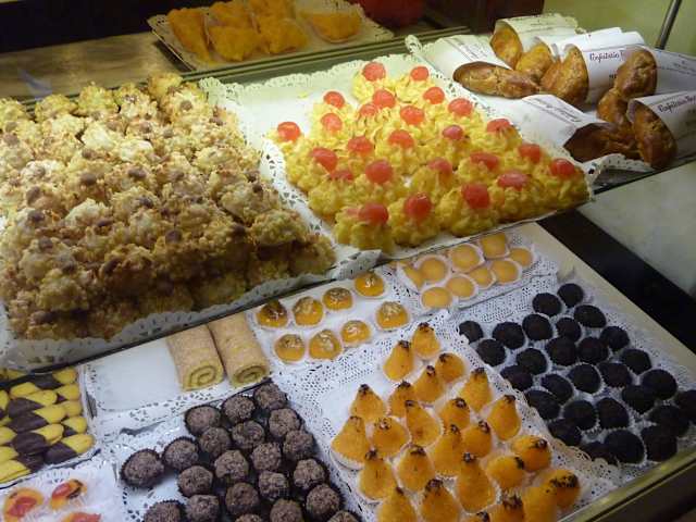 In der Confeitaria Nacional kann man ,unter einer mit Spiegeln verzierten Decke,mmiertes die dort angebotenen Köstlichkeiten genießen .Gebäck + Kuchen zum mitnehmen werden in verschnürten Pappschachteln verpackt , die reichlich aus dem Cafe getragen werden .