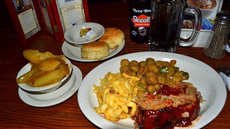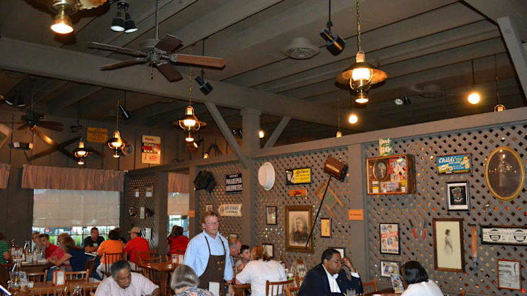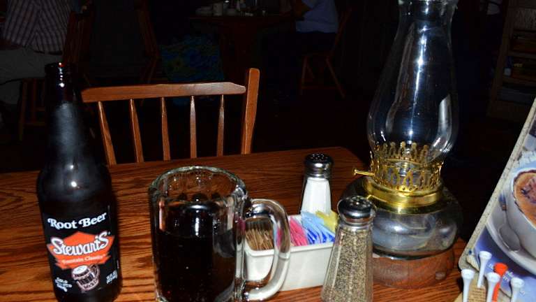 Das Cracker Barrel Old Country Store & Restaurant befindet sich im Norden von Harrisburg, Pennsylvania, und ist sehr gut über die I-81 und deren Abfahrt 69 zu erreichen. Es verfügt über einen sehr großen Parkplatz, der sich über insgesamt drei Seiten des Restaurants erstreckt und somit sehr gut zu erreichen ist. Die Sicherheit des Parkplatzes ist gut, da trotz der Größe leicht überschaubar. Zudem sind die Parkbuchten sehr großzügig bemessen, was wohl ein Tribut an die amerikanischen Pick-ups, SUVs und Vans sein dürfte. Das Gebäude wirkt von außen ansprechend und erinnert ein wenig an einen Saloon. Auf der Terrasse werden Schaukelstühle verkauft, was bereits erahnen lässt, dass es im Inneren wohl ein Geschäft geben dürfte. Und genau dies ist auch der Fall! Das Restaurant hat im Eingangsbereich zunächst einen Kramladen, den so genannten "Old Country Store", in dem man neben Souvenirs wie T-Shirts oder Hüte auch allerlei Krimskrams erstehen kann, wie dies beispielsweise in Deutschland im Nanu Nana der Fall ist. Duftkerzen, Stoffpuppen, Lebensmittel und Süßigkeiten dürfen hierbei auch nicht fehlen. Zwischendurch gibt es immer wieder Aktionen, bei denen bestimmte CDs diverser Country-Stars für einen guten Zweck angeboten werden. Im Cracker Barrel handelt es sich um ein Restaurant, das zum einen sehr gut besucht ist und bei dem man zum anderen kein Free Seating hat, sondern seinen Sitzplatz durch das Personal zugewiesen bekommt. Daher sollte man direkt nach dem Betreten bereits anmelden, für wieviel Mann man einen Tisch benötigt. Während man nun auf einen freien Tisch wartet, kann man gemütlich durch das Angebot im Old Country Store stöbern. Wird man schließlich aufgerufen, wird man durch das Personal in den Gastraum geführt, der im Cracker Barrel in Harrisburg zweigeteilt ist. Dabei fällt einem auf, dass trotz des urigen Ambientes sowohl der Old Country Store als auch die Gaststube sehr gepflegt und in einem sehr guten Zustand sind. Die Atmosphäre im Cracker Barrel Old Country Store & Restaurant muss man einmal miterlebt haben! Im Old Country Store selbst fühlt man sich wirklich ein bisschen in die Vergangenheit zurück versetzt, als die Cowboy und Farmer noch im Gemischtwarenladen einkaufen waren. Von den Decken hängen allerlei Handwerkzeuge und Waren der damaligen Zeit, die im interessanten Kontrast zu den modernen Waren in den Regalen stehen. Dazu die hölzernen Decken und Böden und all die urigen Accessoires. Im Restaurant erinnern Tische und Stühle von ihrer Aufmachung her an Saloons, wie man sie aus Western Filmen her kennt. Sehr schön finde ich hier, dass es einen separaten Tisch mit integriertem Dame-Spiel gibt. Dieser Tisch ist zumeist von Kindern belegt, die sich hier die Zeit vertreiben können, während die Erwachsenen noch am Reden und/oder Essen sind. Die Tisch-Dekoration ist gut und praktisch. Neben Pfeffer und Salz gibt es zumeist eine Flasche mit Ketchup. Grundsätzlich findet man aber einen Petroleumlampe und ein Hüpfspiel vor. Letzteres vertreibt einem die Zeit zwischen Bestellung und Lieferung des Essens. Aber auch die Wandgestaltung kann einem die Zeit sehr gut vertreiben. Immer und überall gibt es etwas zu entdecken. Seien es nun Jagdtrophäen oder einfach nur Haushaltswaren aus dem frühen und mittleren 20. Jahrhundert. Sauberkeit wird im Cracker Barrel offensichtlich sehr groß geschrieben. Tische und Stühle sind ebenso gut gereinigt und gepflegt wie das Geschirr, die Gläser und das Besteck. Und auch der Boden wird stets sehr sauber gehalten. Ständig sieht man Mitarbeiter umher laufen, die hier und da wieder am Zusammenkehren sind. Das Publikum im Cracker Barrel ist eine bunte Mischung aus allen möglichen Gesellschaftsschichten und Gruppen. Junge Leute findet man hier ebenso an wie alte Menschen, augenscheinliche Geschäftsleute oder Touristen. Die Speisekarte des Cracker Barrel ist sehr umfangreich, und wenn man sie noch nicht kennt, wird man erst einmal einen Moment benötigen, um sie studieren zu können. Die Auswahl an Speisen ist groß, und es lohnt sich immer wieder, nach den angebotenen Menüs zu schauen. Oftmals werden diese nämlich sehr preiswert angeboten und bieten einem zudem die Möglichkeit, bis zu drei Beilagen aus der Beilagen-Liste auszuwählen. Ich hatte mich bei meinem Besuch für Meatloaf, Makkaroni mit Käse, gebratene Okra und Bratapfel entschieden. Qualitativ ist das Essen gut, man merkt ihm aber schon an, dass es in einer Art Massenabfertigung zubereitet worden ist. Es schmeckt gut und ist gut gewürzt, aber nicht so hochwertig, wie man es vielleicht in anderen Restaurants erhalten würde. Arrangiert wurde das Essen schön, wobei mir gerade beim Meatloaf aufgefallen ist, dass dies wirklich ohne besondere Liebe geschehen ist. Der Anblick war alles andere als schön, was ich sehr schade finde. Ich war schon in vielen Cracker Barrel Restaurants in diversen Bundesstaaten, dort hat man sich hierbei definitiv mehr Mühe gegeben. Das Auge isst nun einmal mit! Das Getränkeangebot ist sehr gut. Es gibt alle möglichen Softdrinks und auf Wunsch auch alkoholische Getränke. Wichtig ist hier natürlich, dass man bei der Bestellung daran denkt, dass man alles automatisch mit Eis gebracht bekommt. Wer dies nicht mag, sollte dies bitte gut betonen. In diesem Fall erhält man dann sein Getränk in einem entsprechend gekühltem Glas. Gerade bei meinem geliebten Root Beer sieht es schon sehr gut aus, wenn man einen eisgekühlten und entsprechend beschlagenen Bierkrug hingestellt bekommt. Qualitativ sind die Getränke gleichfalls sehr gut. Es handelt sich jeweils um Flaschengetränke namhafter Hersteller mit entsprechend guter Qualität. Gerade beim Root Beer kenne ich mittlerweile sehr viele verschiedene Hersteller und auch deren Unterschiede in der Qualität. Und das Root Beer beim Cracker Barrel ist beispielsweise sehr lecker. Das Personal beim Cracker Barrel ist sowohl im Old Country Store als auch im Restaurant seh
