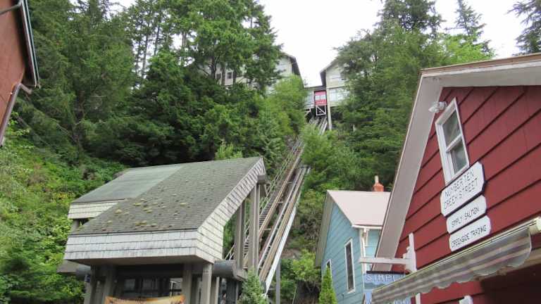 Nicht weit von der Anlegestelle der Kreuzfahrtschiffe findet Ihr die Creek Street, eine Strasse, besser eine Strasse nur für Fußgänger auf Holzstelzen. Es ist die Touristenatraktion in Ketchikan und dementsprechend voll. In den Häusern sind viele Geschäfte mit den üblichen Touristen Souveniers, dann gibt es noch das Dolly House, ein ehemaliges Bordell, wo die Goldsucher Ihr verdientes Geld wieder ausgaben, mit 10 US Dollar ist man drin, da das Haus aber sehr klein ist , haben wir uns dieses Geld gespart. Es gibt am Ende der Straße noch einen Schrägaufzug, leider war der außer Betrieb.