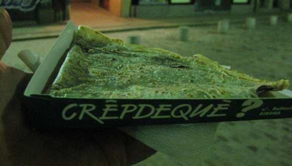 Auf der Suche nach einen Lokal liefern wir in der Fußgängerzone der Altstadt häufiger an diesen Imbiss vorbei. Durch ein Fenster zur Straße werden Crepe verkauft. Und eigentlich war dort immer eine Schlange von 5 bis 10 Leuten anzutreffen. Um 22 Uhr nach dem Abendessen holten wir uns schließlich dann auch noch einen Crepe... Lage: Ungefähr auf der Höhe der Kirche; jedoch in der Fußgängerzone in der Altstadt. Einfach da wo die Leute auf der Straße anstehen ;)