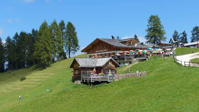 Die Rotwandwiese ist als Startpunkt vieler Wanderrouten bekannt. Mit der Kabinenbahn kommt man auf ca. 1800m. Hier bietet sich einen schönen Ausblick in das Sexter Tal. Man kann diverse Wanderwege zum Kreuzbergpass nehmen. Zum Teil sind es Klettersteige. Auch führen zwei Routen zum Fischleintal oder eine nach Moos zur Talstation. Bei der Bergstation hat es zwei Restaurants. Leider verschandeln Skipisten etwas die Landschaft. Wir wanderten zum Fischleintal. Ein steiler gut markierter Weg. Wer gerne Wandern, oder auch nur die Aussicht geniessen will ist hier sicher gut bedient.