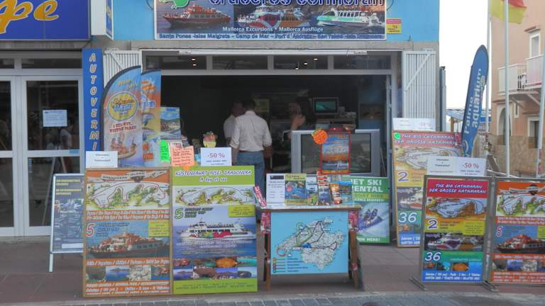Liebe Urlaubsgäste in Paguera Die Firma" Cruceros Cormoran" Avda. Paguera 66, Lokal 1 ( dirket auf dem Boulevard ) 07160 Paguera-Mallorca Tel. 655577089 oder 0034-971-686849 bietet in Paguera Ausflugsfahrten mit dem Schiff an. Mit dem Schiff " Tropical Delfin " können sie 2 Stunden oder oder 5 Stundentouren bei uns buchen. Das Schiff " Jumbo 2 " fährt täglich zur Insel Dragonera ( 5 Stundentour ). Auf allen Bootstouren können sie Baden ( Taucherbrillen etc. vorhanden gratis ). In den Sommermonaten veranstalten wir das "Paguera Partyboat" mit dem Schiff " Tropical Delfin ". Dabei sehen sie die besten Sonnenuntergänge vom Meer aus. Ein Erlebnis für jung und alt. Auf den 2 Stundentouren halten wir an den Inseln "Malgrats " und füttern die Fische. Durch die 36 Unterwasserglasfenster können sie die schöne Unterwasserwelt bewundern. Unsere Schiffe können auch für private Events ( wie Geburtstage, Hochzeiten etc. ) gebucht werden. Dafür schicken sie und einfach eine E-Mail info@cruceroscormoran.com oder schauen sich sich unsere Hompage an www.cruceroscormoran.com Wir freuen uns auf Ihren Besuch, schauen sie einfach in unserem Büro vorbei. Mit freundlichen Gruss Das Cruceros Cormoran Team